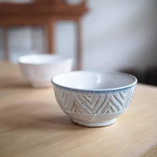 器の釉薬は土との相性もあり、簡単に誰でもできるものではありません。試行錯誤してできた色合いは線彫りを美しく魅力的に、そして食事を美味しく彩ります。