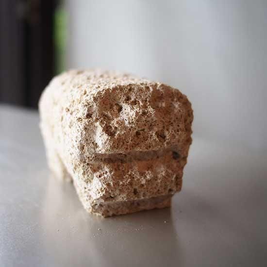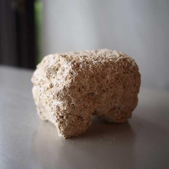 天然の石灰岩で作られています。そのため砂状の粒が落ちることがありますが、品質に問題はございません。