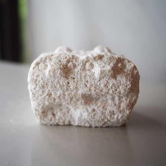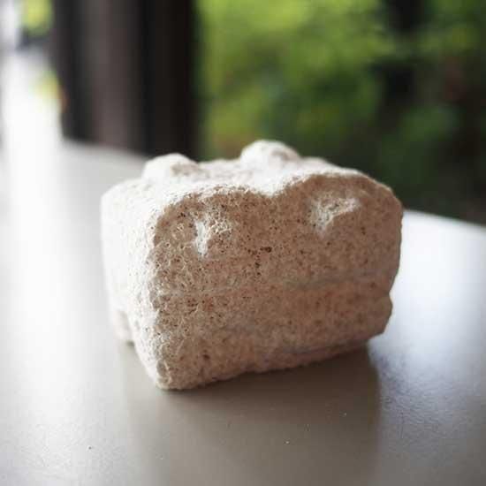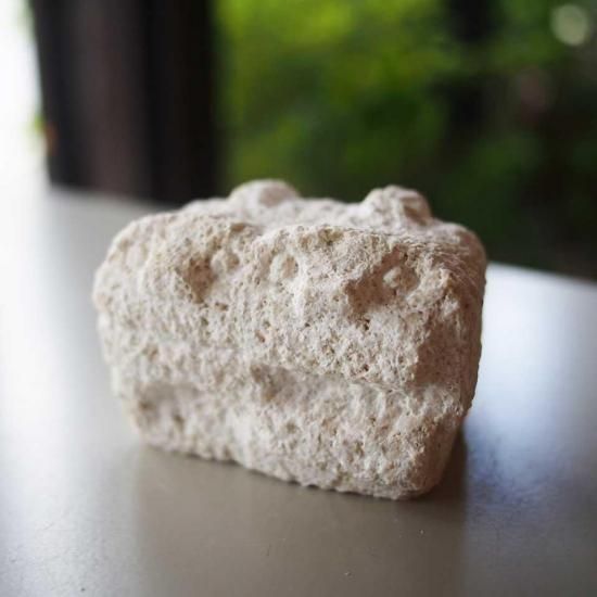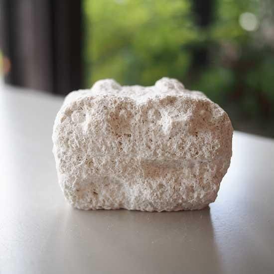 天然の石灰岩で作られています。そのため砂状の粒が落ちることがありますが、品質に問題はございません。