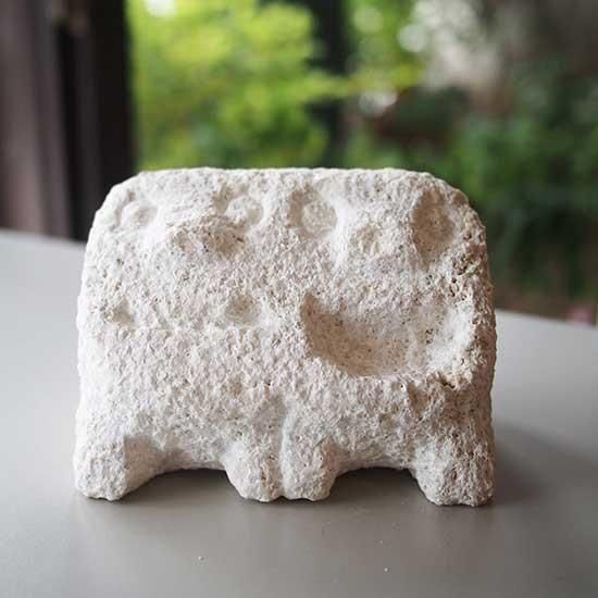 天然の石灰岩で作られています。そのため砂状の粒が落ちることがありますが、品質に問題はございません。