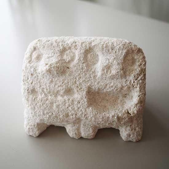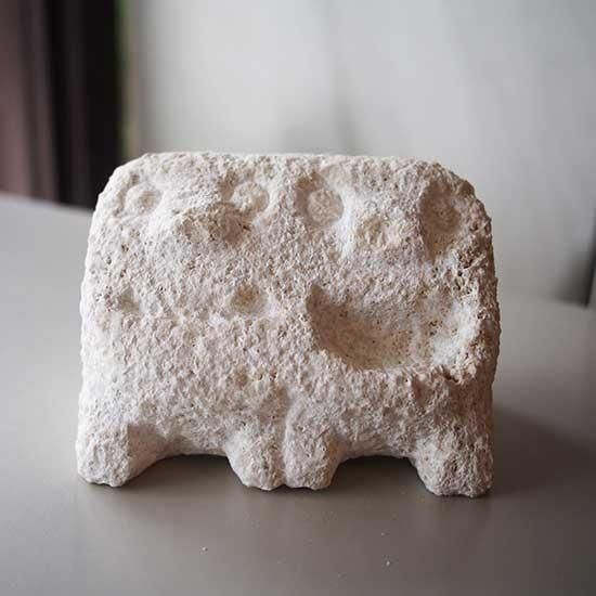 若山大地さんは、沖縄で古くから作られてきた石獅子を今に伝える作り手です。昔と変わらない手法で、琉球石灰岩を使い手彫りで一つ一つ製作しています。一見石の塊のように見えますが、日の当たり具合や角度で生き生きとした石獅子が浮かびあがります。