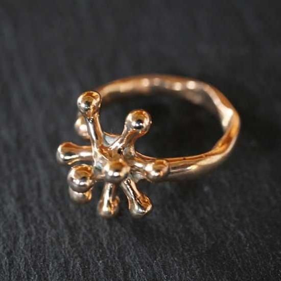 MONICA CASTIGLIONI の"ピスティリーニ"シリーズの代表作。触手を伸ばすように広がるダイナミックなフォルムは、花の一部"雌しべ"をモチーフにしたものです。美しい花を顕微鏡で覗き込むと、そこに現れるのは生命を繋ぐ源。混沌と秩序を併せ持つ自然の圧倒的な美にインスパイアされたリングです。